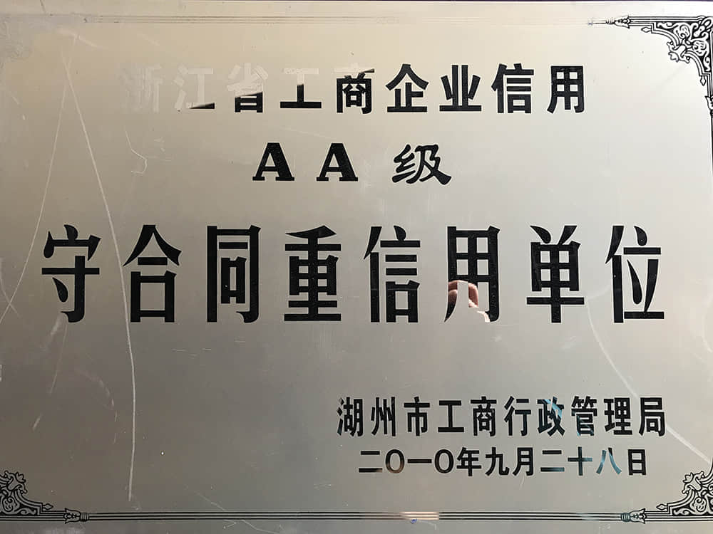2010浙江省工商企業(yè)信用AA級守合同重信用單位