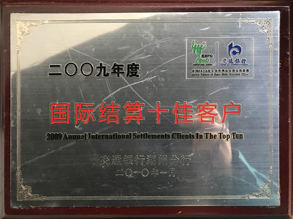2009年度國際結(jié)算十佳客戶(交行)